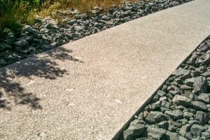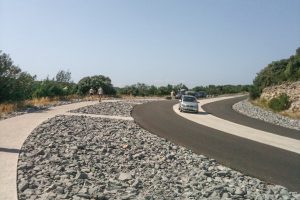 Ici, le maître d’œuvre a choisi de tapisser les bas-côtés d’un gros concassé qui donne le sentiment que l’on a laissé négligemment les résidus des travaux du siècle dernier sur le bord.
