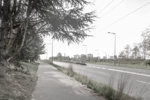 Sauf qu’ici, dans la banlieue, c’est la ville qui est sans géométrie : un assemblage de routes, de logements et « d’espaces verts » qui attendent de faire sens, ensemble.