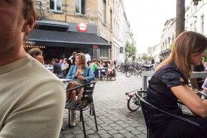 Dans le grand rectangle, les cafés et les restaurants chics.