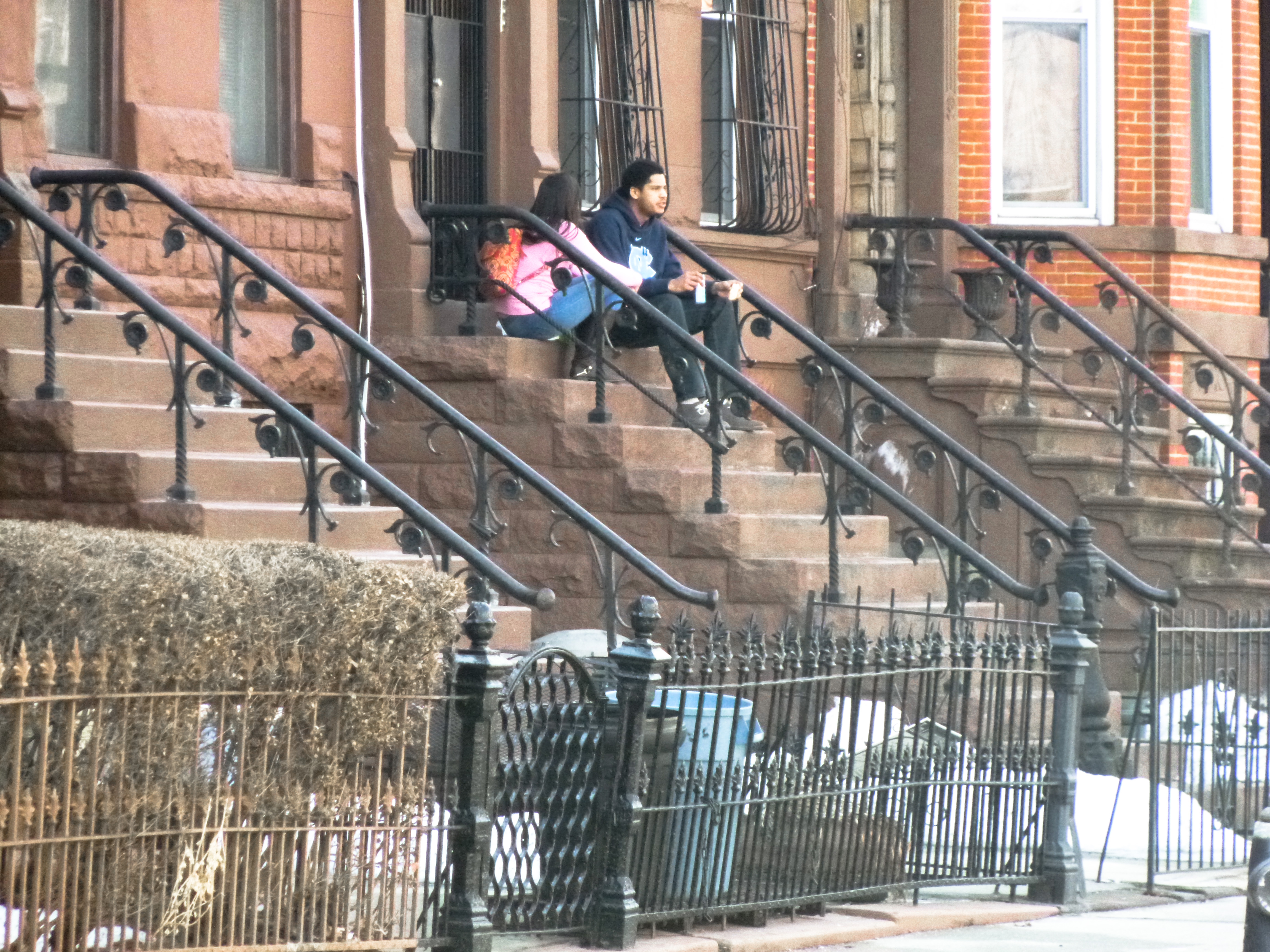 Et à Brooklyn, nous avons vu le portillon disparaître. L’escalier ouvre alors directement sur la rue. La barrière n’occupe qu’un rôle symbolique pour délimiter la limite du jardinet de part et d’autre du seuil.