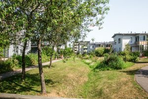 Trouver une ville où il est possible de déplier son vélo tout juste sorti des soutes de l’avion pour rejoindre le centre-ville, en se guidant au soleil à travers les bois, en s’arrêtant boire un jus dans une ferme, en passant devant des jardins partagés sans la moindre clôture, en découvrant un cimetière au milieu des arbres et sans croiser le moindre immeuble, sans percevoir les axes autoroutiers.