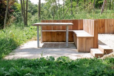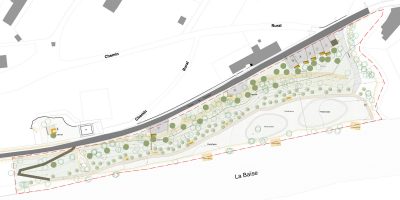 faire une promenade agréable et une aire de jeux pour enfants; aménager des tables de pique-nique en s’adaptant à la topographie naturelle du site, en offrant un lieu agréable où s’arrêter.