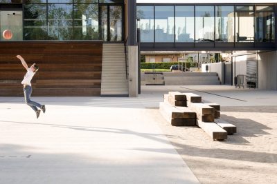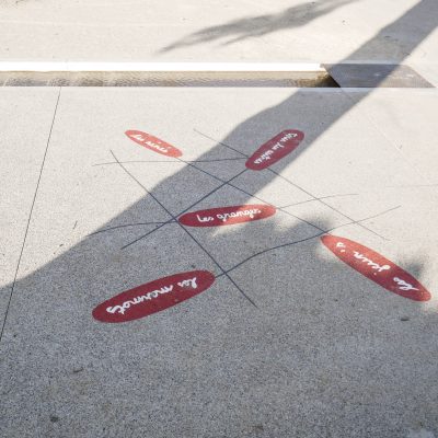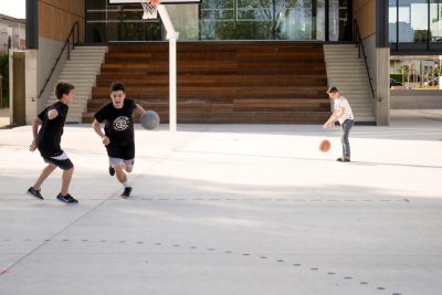 C’est pourquoi tous les accès débouchent sur le même espace dans lequel on trouve de quoi jouer au basket, faire de la pétanque ou jouer dans le canelet ...