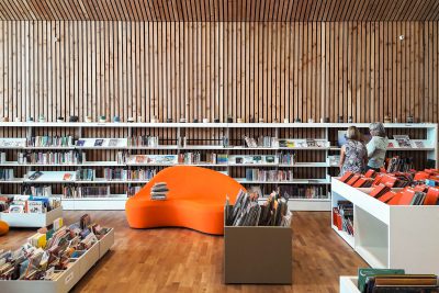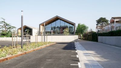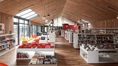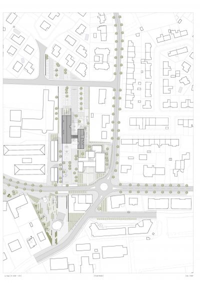 Un projet comprenant une bibliothèque, une ludothèque, un foyer des anciens, une maison des jeunes, ... : programme riche de diversité qui poussait pourtant à créer un bâtiment compact et frontal au bord de la départementale.