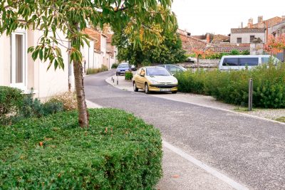 La cohérence du projet d’un bout à l’autre de la commune est assurée par l’homogénéïté des traitement et le soin apporté au dessin de l’espaces publics dans les détails .