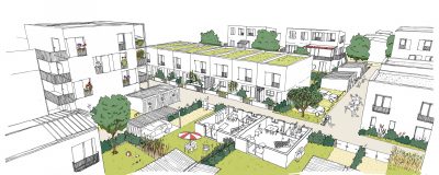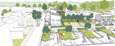 demande, le projet permet une plus grande variété de typologies de constructions. Faisant la part belle aux maisons individuelles, il ajoute aussi des typologies « intermédiaires ». Le projet met l’accent sur une convivialité urbaine alliant des rues vivantes et une intimité préservée