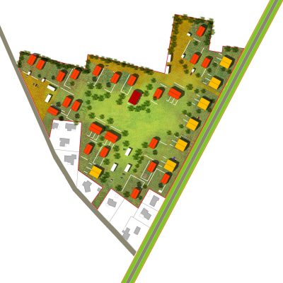 • fabriquer un petit cœur de bourg où prennent place les équipements scolaires et culturels, qui fait face au centre ancien.